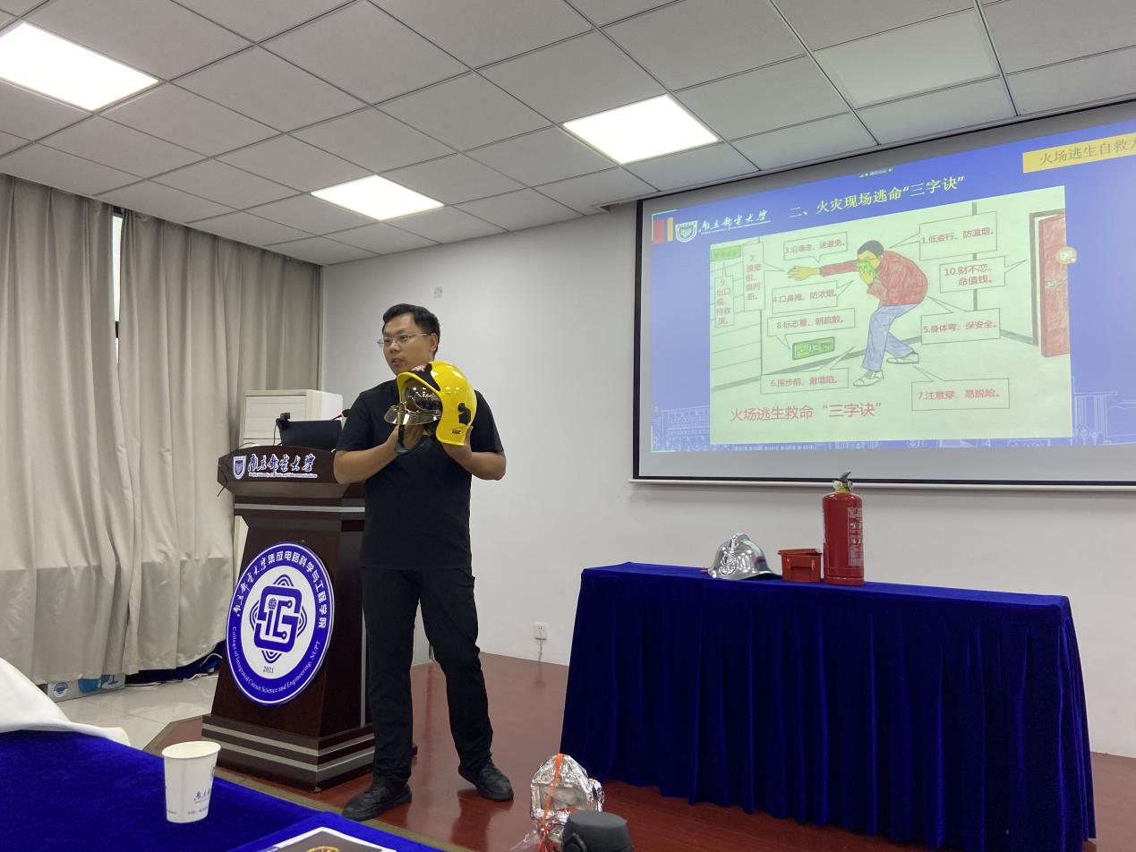 吴处长从实验室消防安全形势、实验室消防安全隐患、实验室的火灾预防、消防基本知识与技能等四个方面进行讲解,让老师和同学们深刻地认识到在日常的学习生活中关注消防安全、珍视生命的重要性,同时也学习到了当火灾来临时如何自救逃生的消防知识,强化了火灾预防意识。