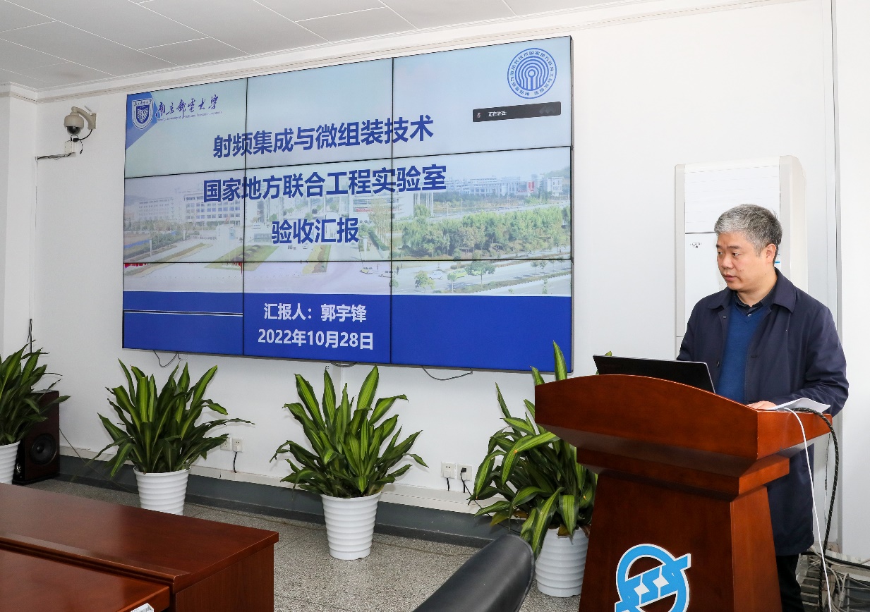 中国科学院院士、东南大学崔铁军教授担任本次验收专家组组长,南京航空航天大学副校长吴启晖教授、南京大学施毅教授为专家组成员。江苏省工程咨询中心处长李科、工程师徐伟,我校党委书记刘陈教授,校党委常委、副校长蒋国平教授,校党委常委、副校长郭宇锋教授出席会议。我校科学技术处、产学研合作处、集成电路科学与工程学院、电子与光学工程学院、南京国博电子股份有限公司和南邮南通研究院等相关负责人参加会议。会议由蒋国平副校长主持。