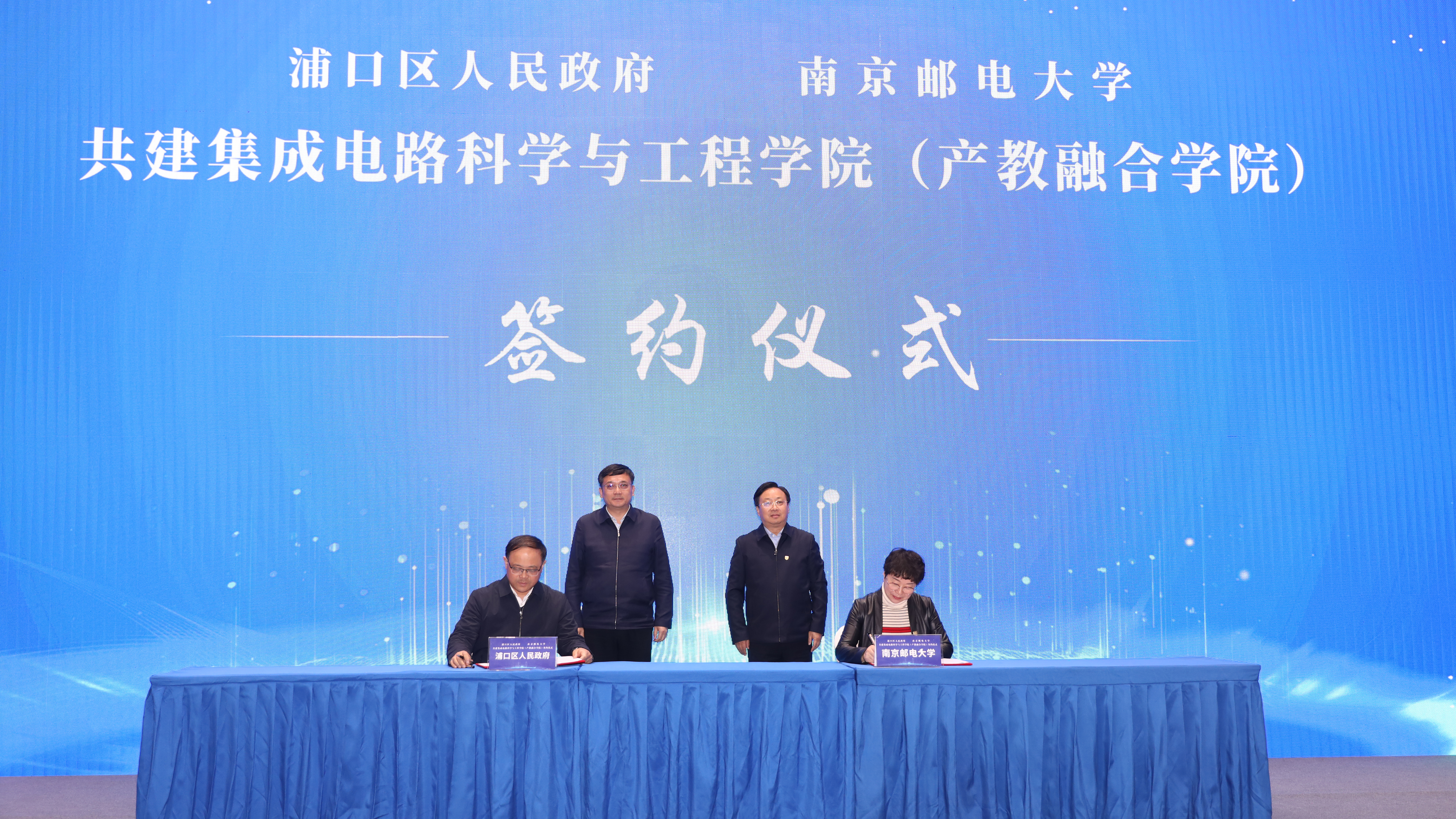在刘陈书记、吴勇强书记等与会领导与嘉宾的见证下,我校与浦口区人民政府签约共建bw西汉姆联,与浦口区企业华天科技(江苏)、南京宏泰半导体科技、南京凯鼎电子科技、南京华瑞微集成电路签约校企战略合作,刘陈书记与吴勇强书记为bw西汉姆联bw西汉姆联揭牌,叶美兰校长与王国平区长为射频集成与微组装技术国家地方联合工程实验室浦口分实验室揭牌,蒋国平副校长与吴俊常务副区长为bw西汉姆联集成电路校友会揭牌。