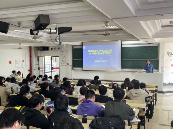 为充分调动学生考研积极性,帮助大三学生准确把握考研形势,明确考研目标,营造良好的考研氛围,3月13日下午,集成电路科学与工程学院召开2020级考研动员大会。学院党委副书记乔祖琴、学院副院长肖建和2020级辅导员范建鹏出席了本次动员会。本次大会还邀请到学校研究生招生办主任王霁和海外教育学院副院长靳雷生。大会由范建鹏老师主持,学院2020级127名学生全体到场参加。