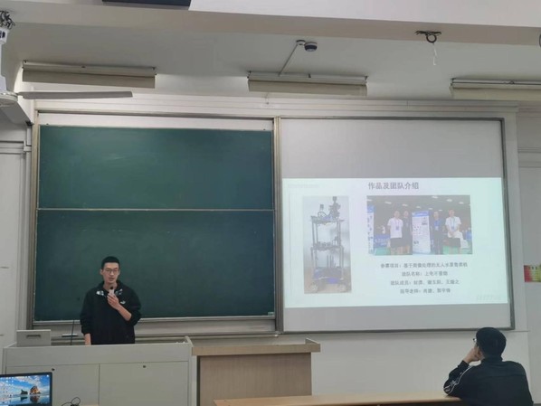 首先,封澳同学对在校期间的学科竞赛经历进行了分享。封澳同学曾获得中国研究生创新实践系列大赛2022年度创新实践之星、第十七届中国研究生电子设计竞赛最高荣誉“研电之星”、第十七届中国研究生电子设计竞赛全国总决赛一等奖。他围绕基于图像处理的无人水果售卖机这一命题,向大家分享了研电赛赛事的命题方向、比赛流程、评判标准和备赛攻略。他鼓励同学们多多关注和参加竞赛,不仅可以激发创造性思维,培养创新精神和实践能力,提高运用所学知识解决实际问题的能力,还可以促进团队意识和优良学风的养成。