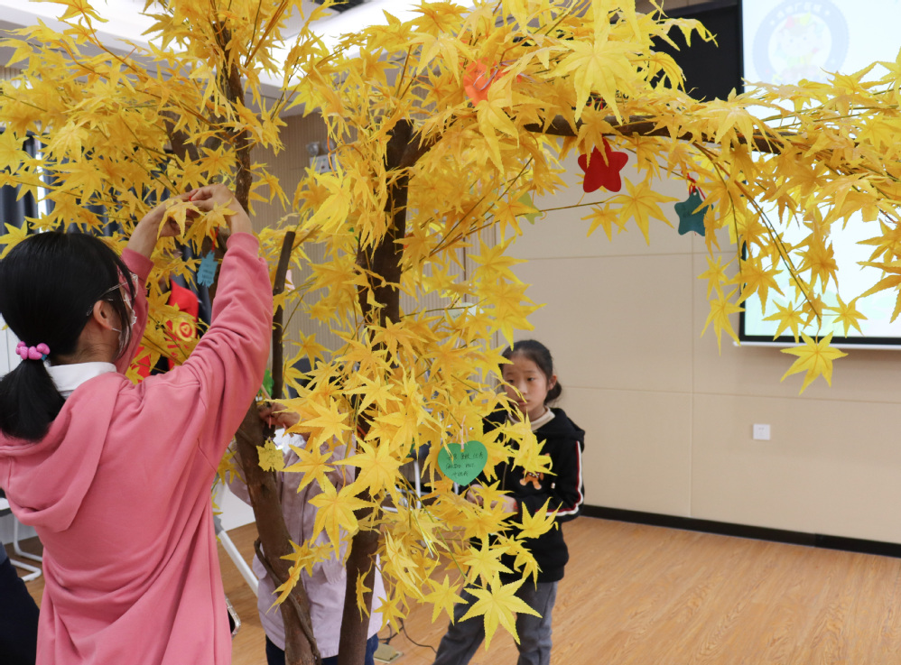 活动尾声,孩子们将内心感触、科技梦想纷纷记录下来,悬挂在“心愿树”上。“感谢哥哥姐姐们的讲解和分享,激发了我对科技小发明的兴趣,我会努力学习知识,成为一名小小发明家。”社区少年代表孙钰彤激动地说。