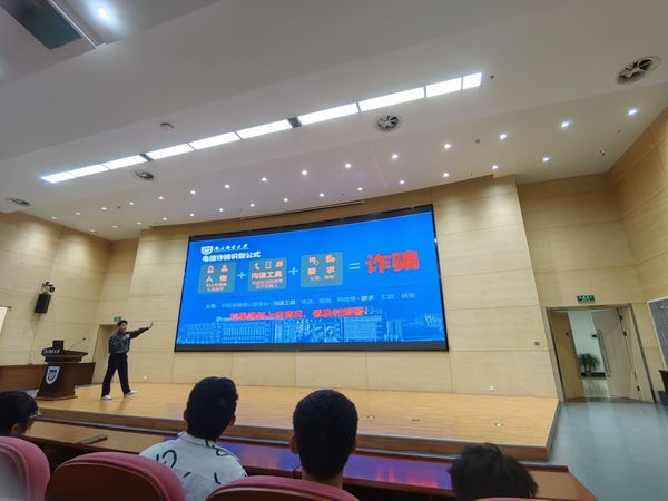 彭建森老师结合实际的诈骗案例和法律知识,以案说法,深入浅出地向同学们讲解了什么是电信诈骗。通过展现诈骗方式的演变过程、梳理常见诈骗案例,分析典型诈骗形式,同学们深刻地认识到当前诈骗手段多样,需要提高个人安全防范意识,才能够保护自己不被诈骗。随后,彭老师传授给同学们一些识别和防范诈骗的小方法,并提醒学生不要相信任何中奖的手机短信,更不要随意参加刷单返利,网络贷款等活动。最后,彭老师引导大家安装反诈APP、关注学校反诈公众号,并呼吁大家主动学习反诈知识,提高反诈意识,一旦遇到诈骗,要及时报警。