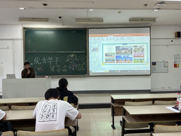 朱晨光同学作为院学生会综合事务部副部长、院青年志愿者协会外联部部长,他主要为同学们分享学习之余的个人提升和社团生活。朱晨光同学首先通过介绍他参加的志愿活动,向同学们分享了参加志愿活动的益处,分别是:一、促进内心成长;二、参加社会实践提升技能;三、探所兴趣,结识好友。随后,他具体介绍了学生会的相关工作。对于如何平衡学业和社团工作这个问题,他认为要首先管理好自己的的学业,在此基础上合理分配参加社团工作的时间。最后,他引导大家思考“我想成为怎样的大学生”,并告诉大家他的目标是做一名成熟的,有责任感的大学生。