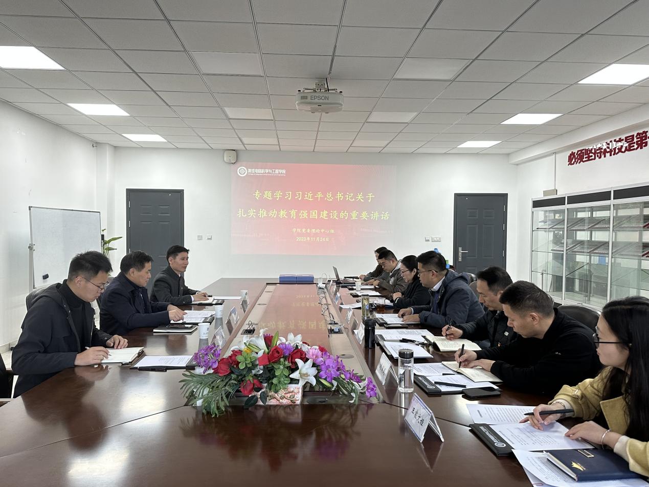 学习会上,中心组成员集体观看了“加快建设教育强国 为中华民族伟大复兴提供有力支撑”新闻联播视频,院党委书记高翔领学《扎实推动教育强国建设》重点内容,中心组成员乔祖琴、肖建、蔡志匡做学习重点发言。