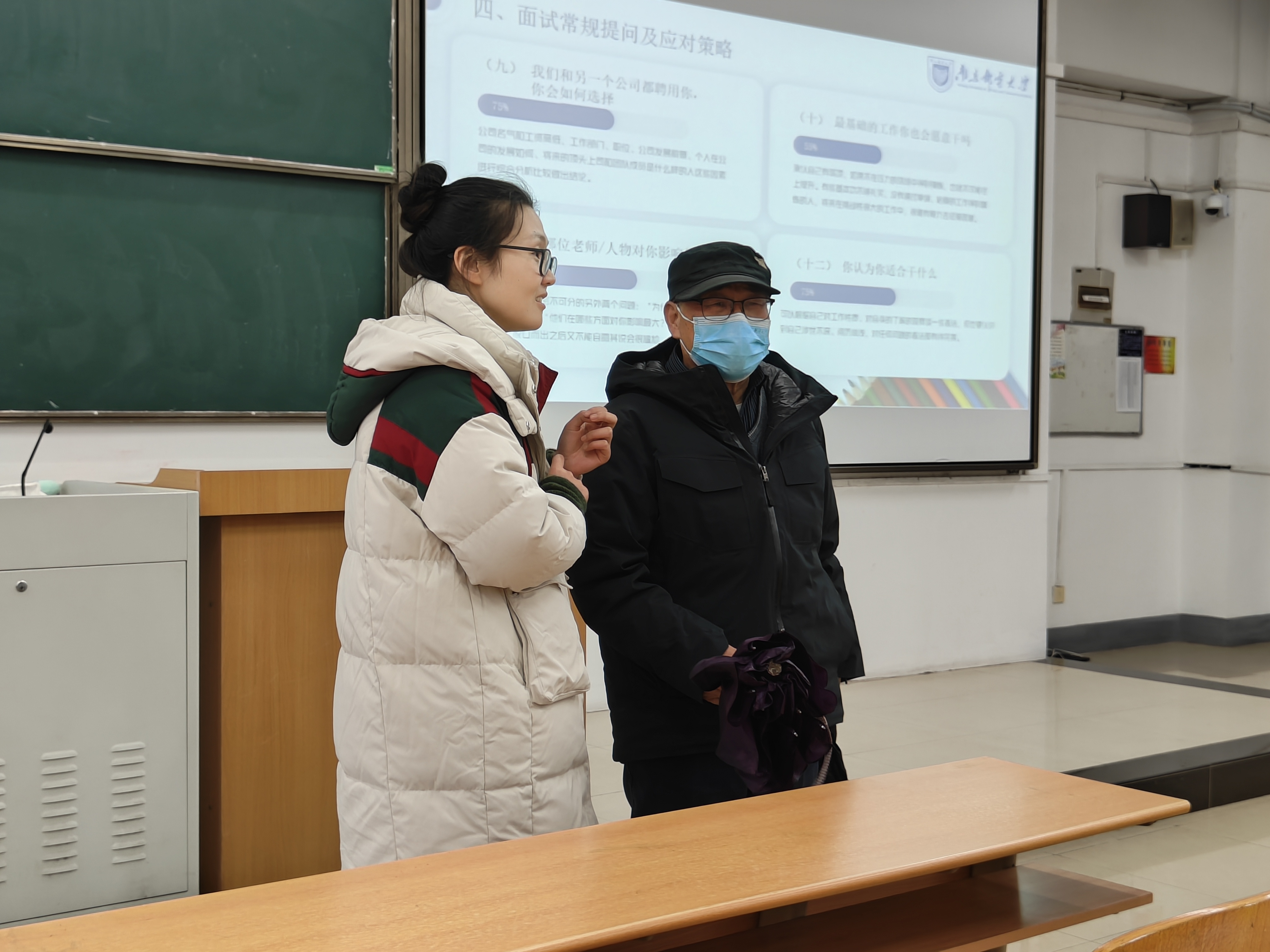 李雷教授走进课堂,随机听取王宸文姬老师的《大学生职业生涯规划课程》,课上,王老师以自身故事激发学生的学习兴趣,通过现场演示、动手操作、观看课件等形式丰富的教学手段,与学生积极互动。整个课堂气氛活跃,师生互动积极,学生参与度高,语言表达精准,逻辑思维清晰。
