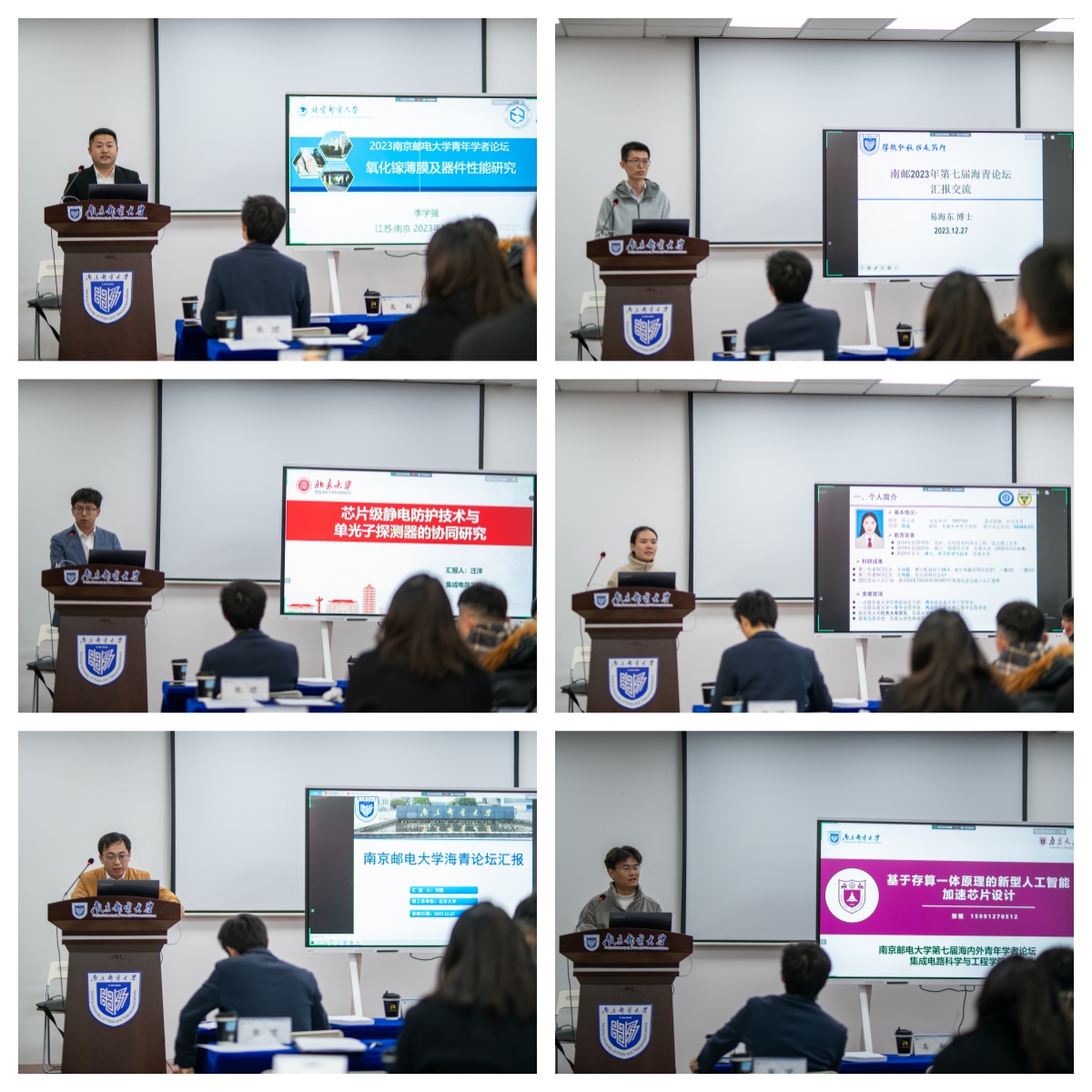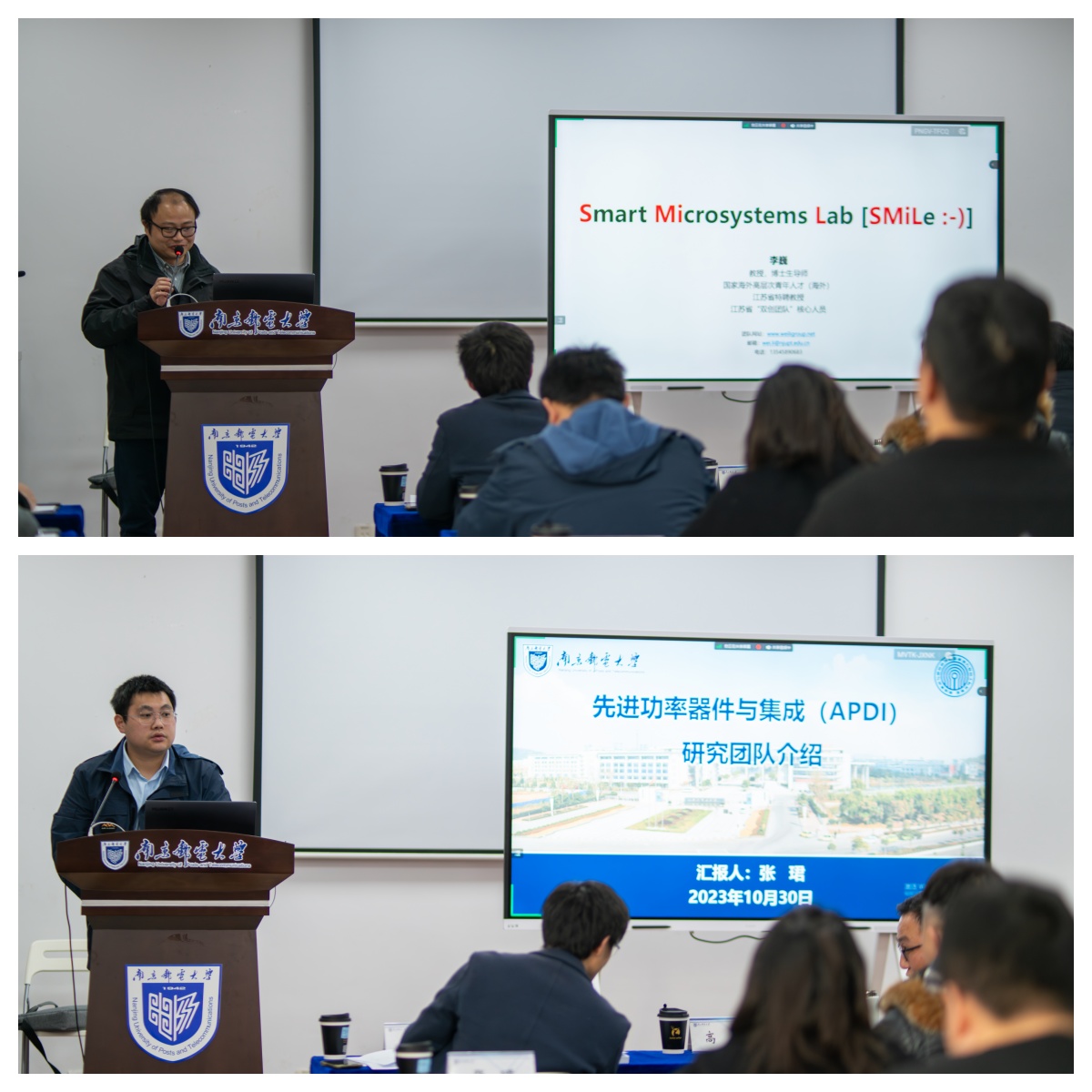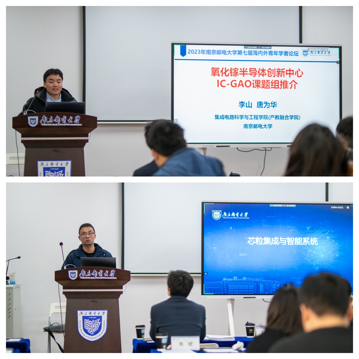 李巍、张珺、李山、谢祖帅4位老师作团队推介。他们分别代表李巍教授团队“智能微纳机电系统技术与应用”、郭宇锋教授团队“先进功率器件与集成”、唐为华教授团队“氧化镓半导体创新中心(IC-GAO)”以及“集成电路应用技术研究院”团队介绍、展示了各团队的研究特色和突出成果,让参会青年学者对我院的材料、器件、电路、系统各个研究方向有了更加深刻清晰的了解。