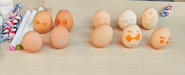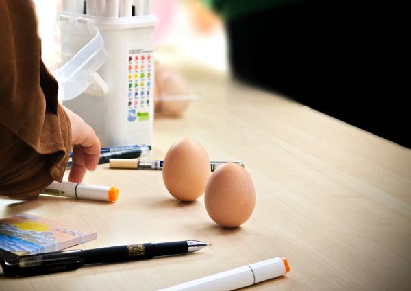 第一步——“随心绘蛋”环节,参与的同学们随机领取一枚鸡蛋,用马克笔在蛋壳上随心绘制,绘制属于自己的春分幸运蛋。同学们发挥奇思妙想,画出了各种各样的有趣图案。