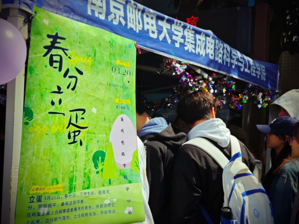 为让同学们更好地感受身边的温暖与爱意,感受春天的魅力与心灵的活力,近日,集成电路学院于南二食堂门口顺利举办“3·20 咱爱您”心理健康周——“春分·立己”立蛋挑战比赛,此次活动由我院分心协举办。