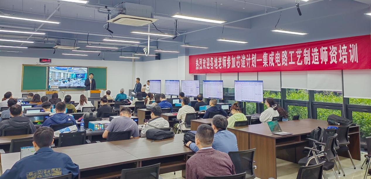 在为期数日的培训中,学员们不仅在课堂上获得了前沿先进工艺制造的理论知识,还有机会实地考察了江苏芯德半导体科技有限公司和国家集成电路芯火平台(ICisC),亲身感受了集成电路制造的实际操作环境,实现了从理论到实践的无缝对接。这种独特的培训方式旨在解决高校在集成电路工艺制造教学中的难点,促进教学和科研质量的全面提升。