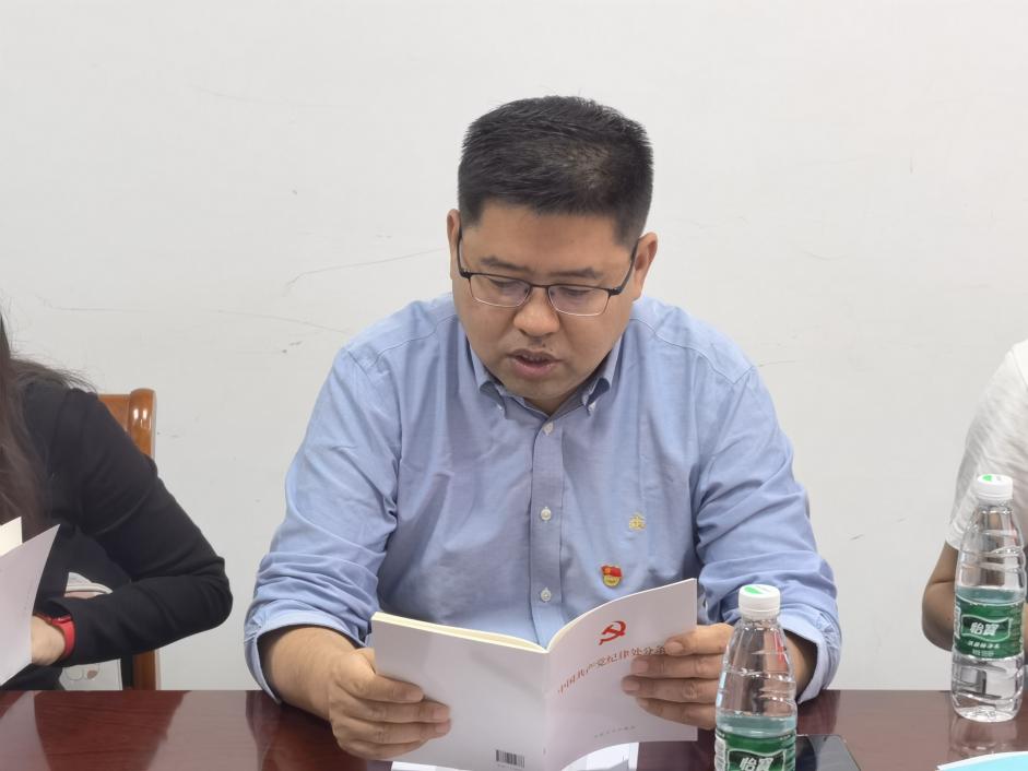 5月8日上午,学院党委在电光B楼212会议室举办党纪学习教育专题读书班,逐条学习《中国共产党纪律处分条例》部分章节,学院党委书记高翔主持学习会,领导班子成员、教工党支部书记参加学习。