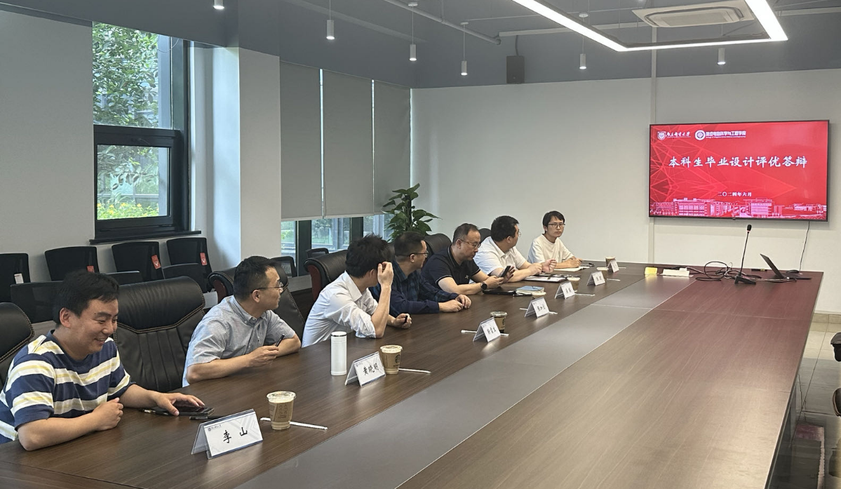6月4日下午,我院2024届本科生毕业设计评优答辩会在浦口集成电路研究院7号楼208会议室举行,本次答辩特邀南京信息工程大学张加宏教授、芯德半导体龚臻高级工程师共同担任答辩组组长,我院教学副院长靳雷生、院长助理张珺、实验室主任黄晓明与教师代表担任答辩组成员,2024届12名本科生参加答辩会。