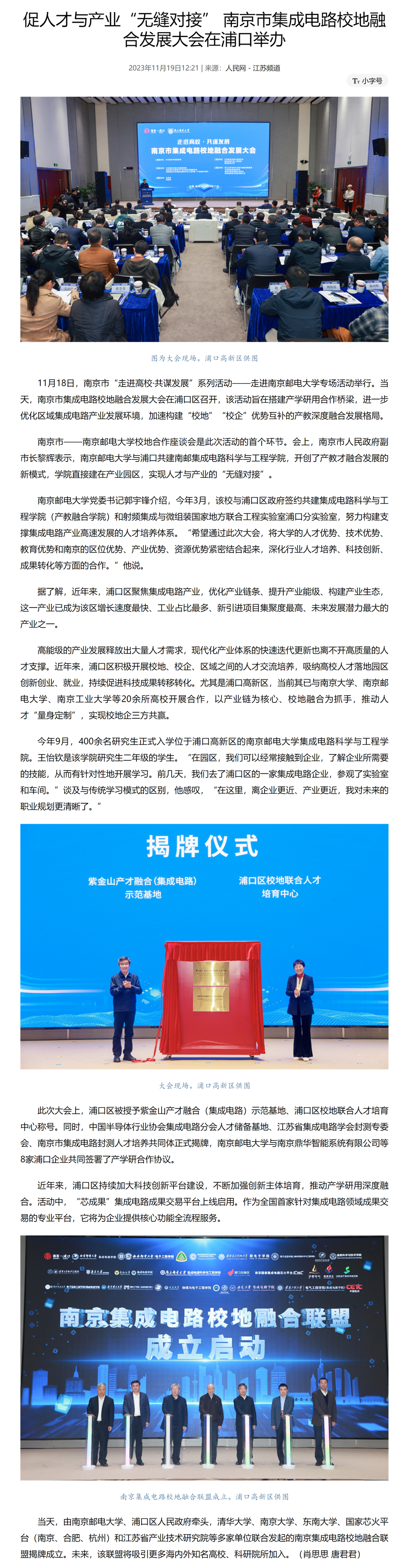 【人民网】促人才与产业“无缝对接” 南京市集成电路校地融合发展大会在浦口举办