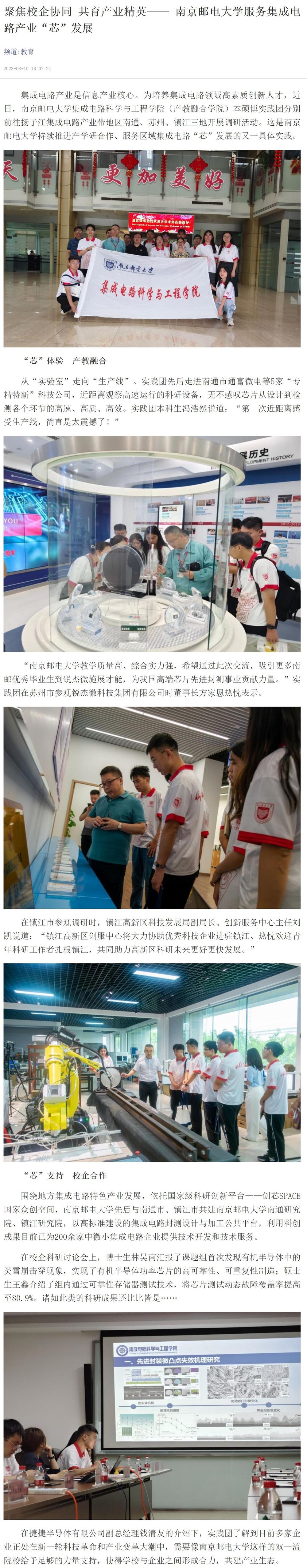 【新华日报客户端】聚焦校企协同 共育产业精英—— bw西汉姆联服务集成电路产业“芯”发展