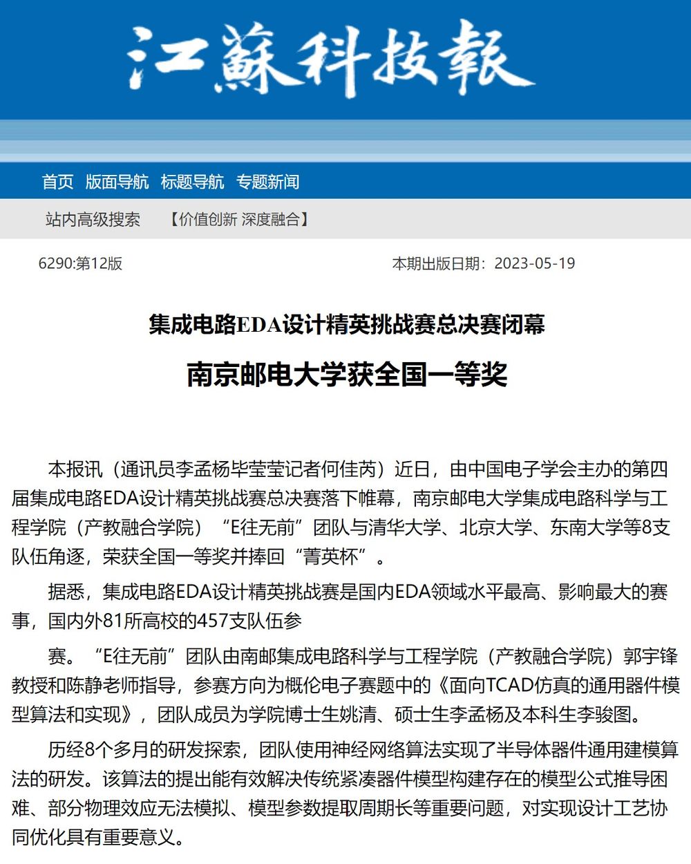 【江苏科技报】集成电路EDA设计精英挑战赛总决赛闭幕 bw西汉姆联获全国一等奖