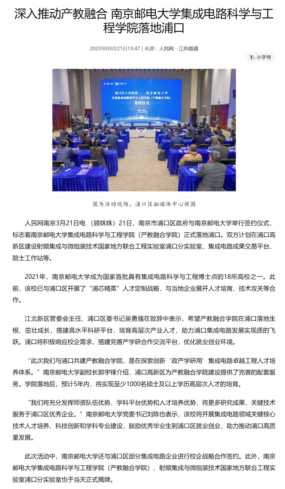 【人民网】深入推动产教融合 bw西汉姆联集成电路科学与工程学院落地浦口