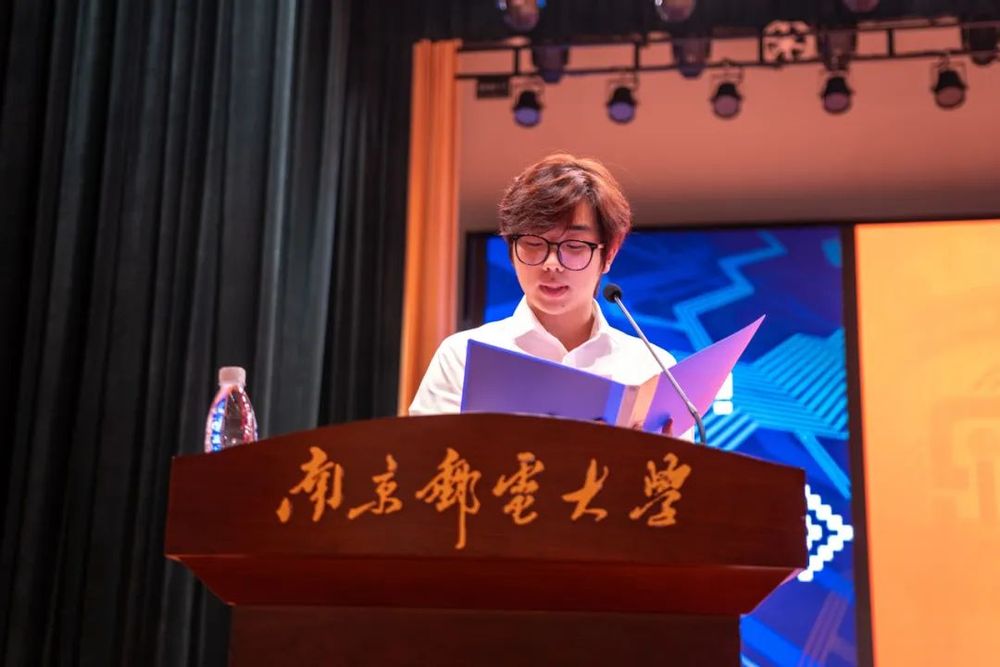 2024级本科生骆澄宇代表新生发言。面对高考前右手无法写字的意外挫折,他没有轻言放弃,而是用左手练习,并以优异成绩考入我院。他期待在未来的大学时光里,能在学校广阔的舞台上发现自我,在集体主义的氛围中追求大我,秉承“信达天下 自强不息”的南邮精神,致力于学术研究,开创美好的未来。