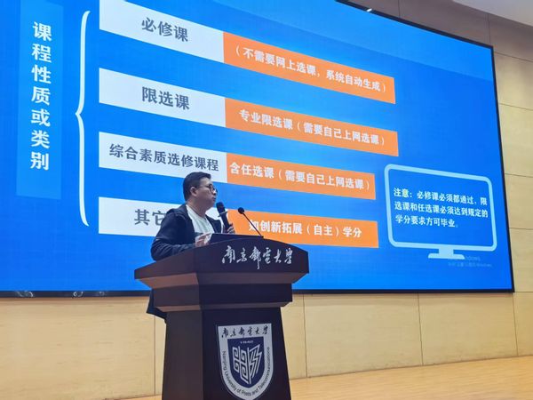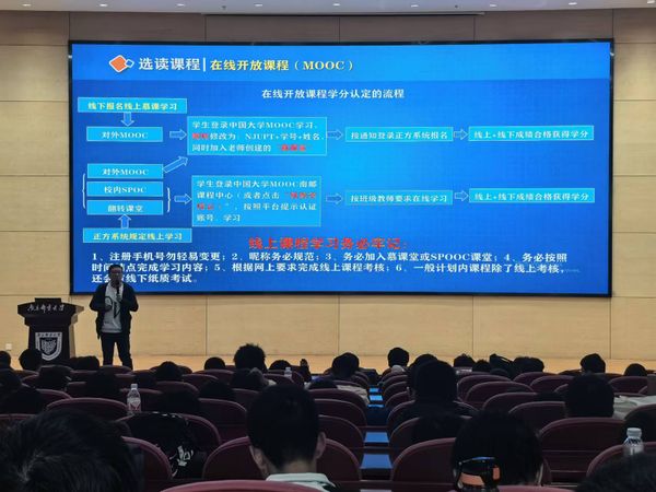 讲座中,苏老师立足于我院各专业2024级本科生培养方案,从选读课程与成绩管理,学籍注册、学业预警与学位授予,转专业、推优保研与国内外交流访学,考试规则,大学生创新训练计划学科竞赛,毕业设计(毕业论文)六方面出发,层层递进,深入浅出,结合实际案例帮助2024级新生充分了解我校学籍管理规定,帮助他们明确大学期间的学习要求,为他们正确规划好大学的学习生活奠定了良好的基础。
