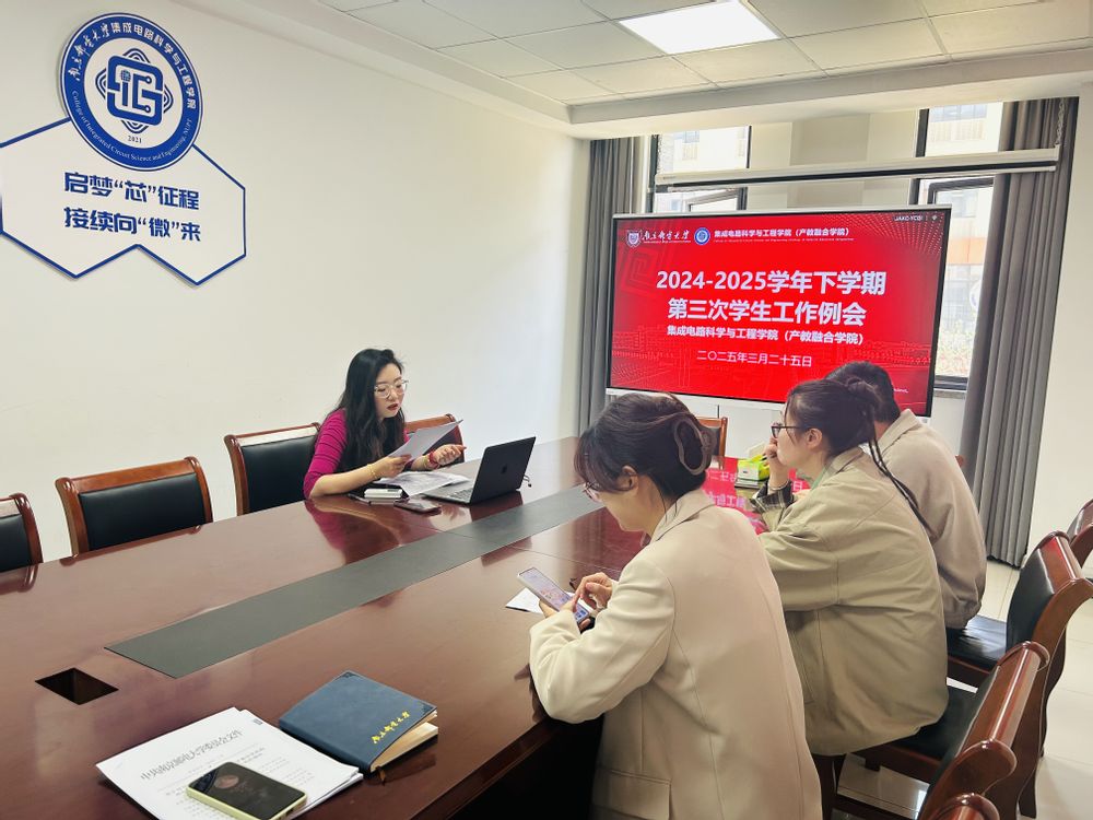 3月25日下午14:00,学院在电光学科楼b212会议室召开本学期第三次学生工作例会,传达学校学生工作会议精神,部署下一阶段重点工作。学院党委副书记、副院长肖俊桂出席会议并讲话,全体辅导员参加会议。