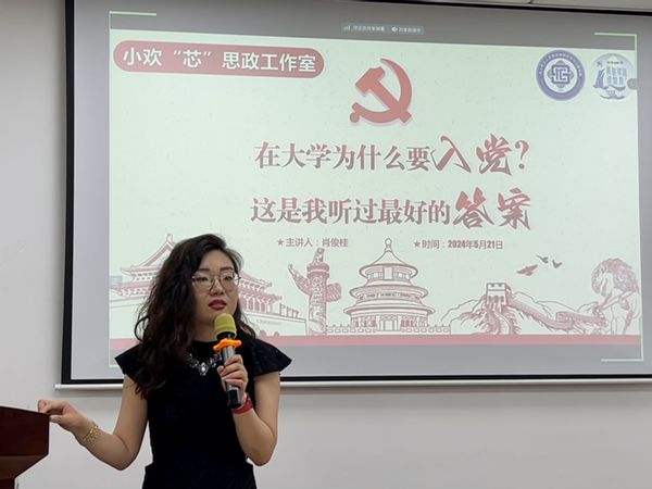 肖俊桂书记围绕《在大学为什么要入党这是我听过最好的答案》展开讲述,以“在大学为什么要入党”为切入点与同学们进行讨论,希望同学们践行“四讲四有”做合格党员,始终心系党、心系人民、心系国家,坚持以知促行,争取做一名合格的中共党员。