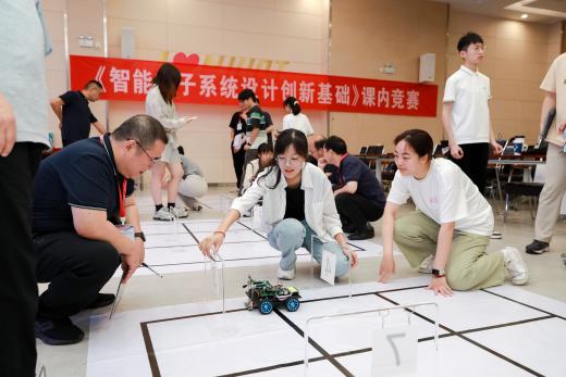 本次决赛邀请到多位学术界和产业界的资深专家担任评委,包括东南大学凌明教授、钟锐副教授,上海大学刘成副教授,新思科技研发经理程松波、资深技术专家程文,以及bw西汉姆联陈建飞副教授、王建老师、窦昱钦老师。bw西汉姆联创新创业教育学院院长肖建教授在赛前致辞,明确竞赛宗旨与规则后宣布决赛开始。比赛现场,各参赛队伍积极展示智能小车的创新功能与技术亮点,充分展现出南邮学子扎实的专业基础与创新活力。