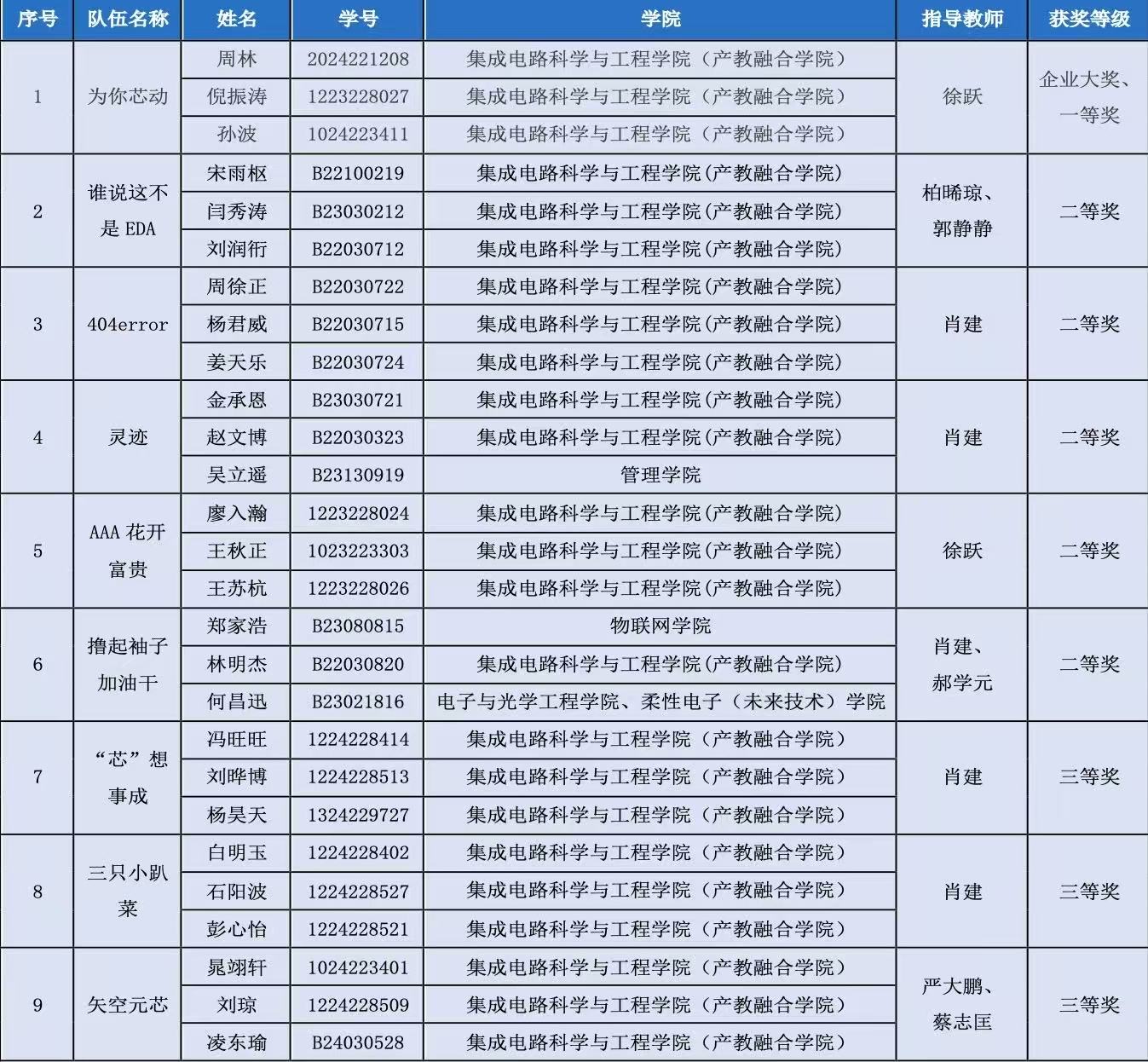 学院第九届集创赛全国总决赛获奖名单