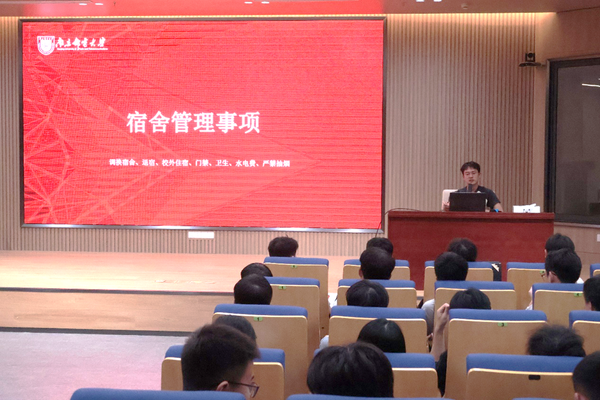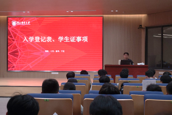 9月16日,为帮助252名新生坚定理想信念、明确学业方向、适应浦口办学点生活,2025级研究生年级大会于浦口办学点1号楼报告厅隆重召开,研究生辅导员张龙老师与全体研究生新生齐聚一堂,大会围绕园区生活、规章制度、成长发展等核心议题展开全面讲解,为新生开启研究生生涯筑牢基础。