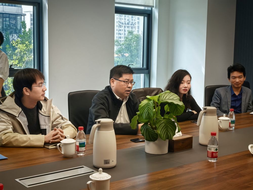 同日下午,学院赶往此次行程的第二站——长沙驰芯半导体科技有限公司。作为一家专注于前沿芯片设计的新锐企业,驰芯半导体在高速接口、先进工艺等领域展现了强大的创新活力。高翔书记一行深入研发一线,与公司创始人景振海总经理及技术骨干进行了深入交流。座谈会上,副书记肖俊桂就学院学生培养情况、就业去向等进行了分享,并表示希望能够与驰芯半导体建立长期的合作关系,将人才输送到企业中,实现共赢。景振海总经理回顾了自身的创业历程,并强调了一流创新人才对于科技型企业发展的核心作用。他表示,非常期待能从学院吸纳更多具有扎实功底和创新思维的优秀毕业生。