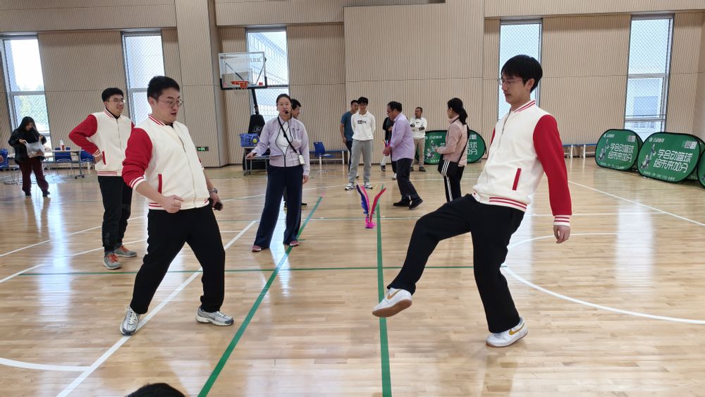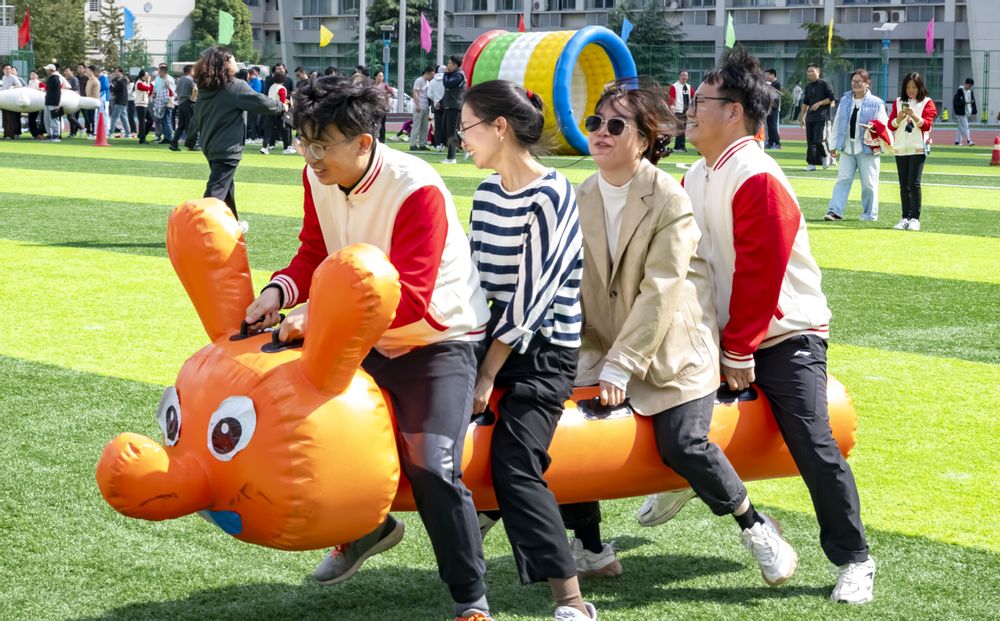 走下讲台,放下教案,老师们在赛场上开启了另一番精彩。本届运动会,学院教职工踊跃报名,参与了多项趣味项目。在“平板支撑”耐力赛区,气氛紧张而专注。老师们以标准姿势长久支撑,赢得了围观师生的阵阵赞叹与加油,生动诠释了“久久为功”的坚韧精神。与此同时,“踢毽子”比赛场地则充满了欢声笑语。五彩的毽子在空中飞舞,划出一道道优美的弧线。老师们身姿轻盈,脚法灵巧,盘、磕、拐、蹦,动作一气呵成。在备受瞩目的4×100米混合接力赛中,由学院青年教师组成的接力队配合无间,他们如电路信号般高效精准地传递着接力棒,为了集体的荣誉奋力冲刺。此外,在“龟兔赛跑”、“动感五环”、“拾贝”等趣味项目中,老师们童心未泯,通力协作,赛场上传来的欢声笑语,成为凝聚团队力量的最佳纽带。