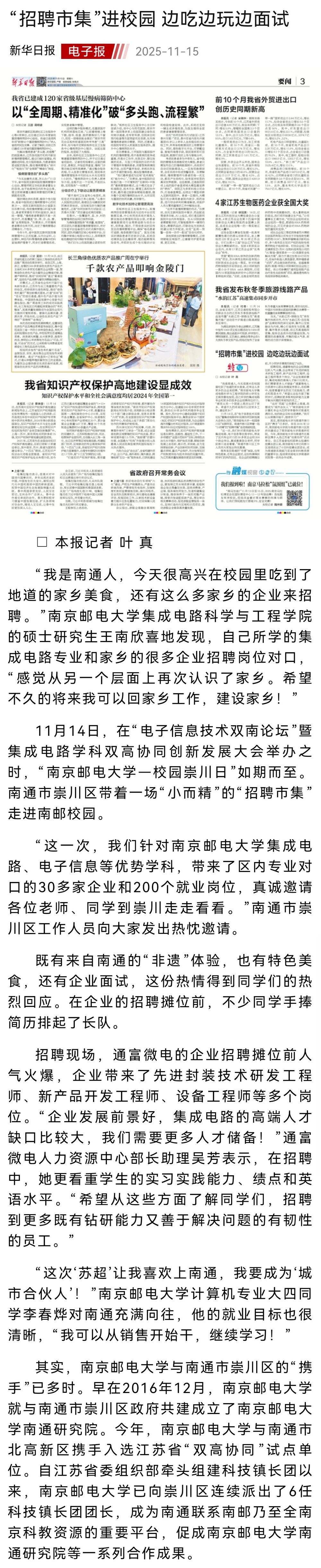 【新华日报】“招聘市集”进校园 边吃边玩边面试