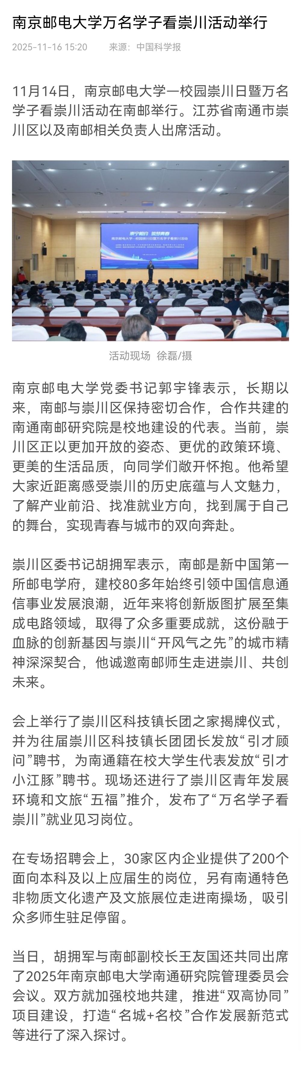 【科学网】bw西汉姆联万名学子看崇川活动举行