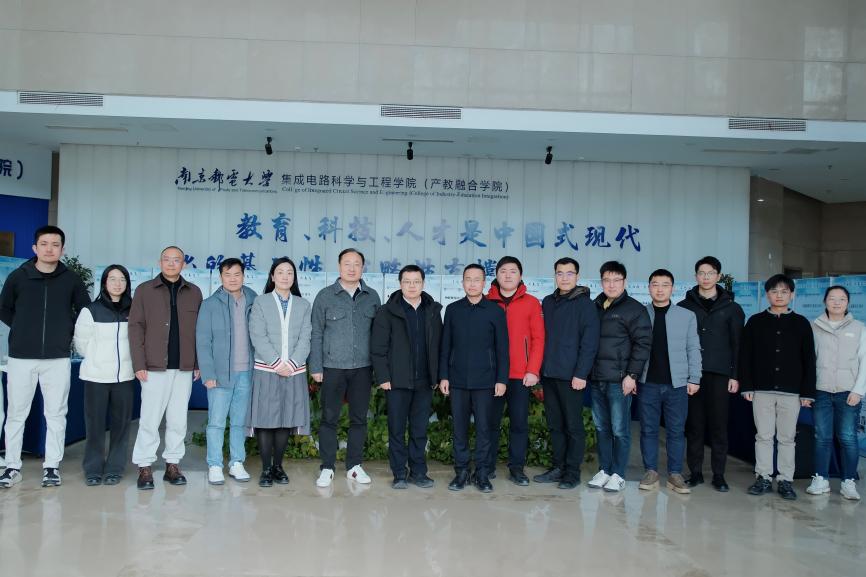 2026年2月4日,共青团南京市委书记石磊、共青团南京市委统战部副部长居文君、南京市青年创业就业服务中心主任王筱斌,以及南京禅生半导体科技有限公司总经理刘加美、南京凌鸥创芯电子有限公司总经理李鹏、江苏富翰医疗产业发展有限公司合伙人于中磊、娄宇捷、轩元资本江苏区域合伙人刘剑、南京蓝藻智能科技有限公司总经理陈浩等企业界代表一行莅临我院调研交流,重点考察了张吉良院长团队在物理不可克隆功能(PUF)芯片领域的研究成果与产业化应用进展。